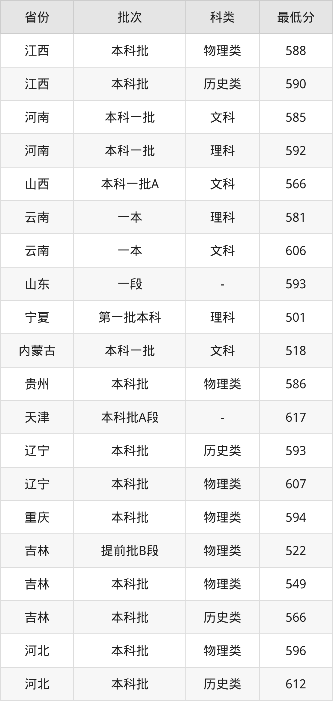 历史类593分(位次2395名),物理类607分(位次12731名);