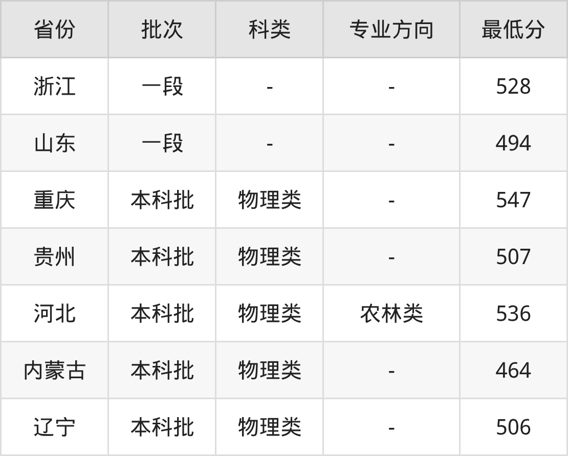 云南农业大学动物科学专业录取分数线2025各省汇总显示,省外招生最低分为河北536分、内蒙古464分、辽宁506分、浙江528分等。更多专业分数详情、选科要求、专业简介等均可在正文查阅。