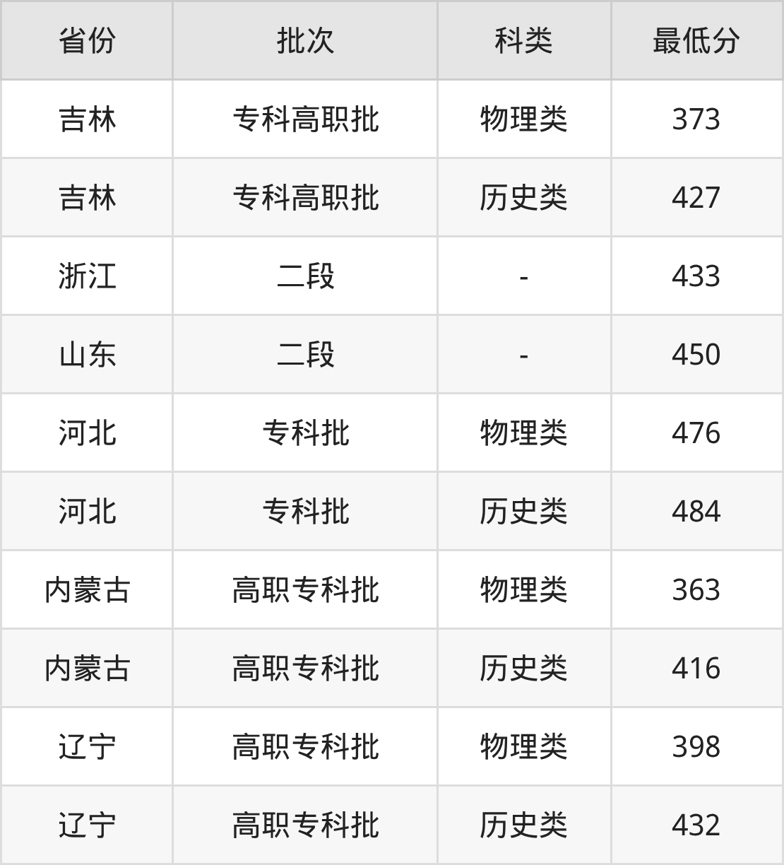 5、吉林省(专科高职批)