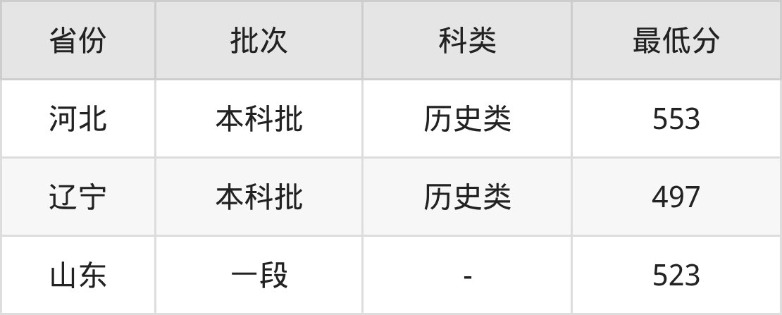 | 批次 | 科类 | 最低分 | 位次 |