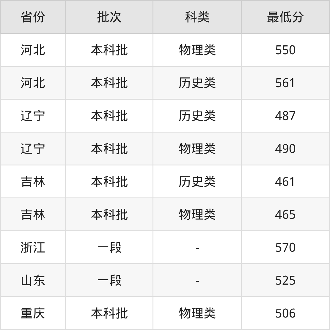 | 批次 | 科类 | 最低分 | 位次 |