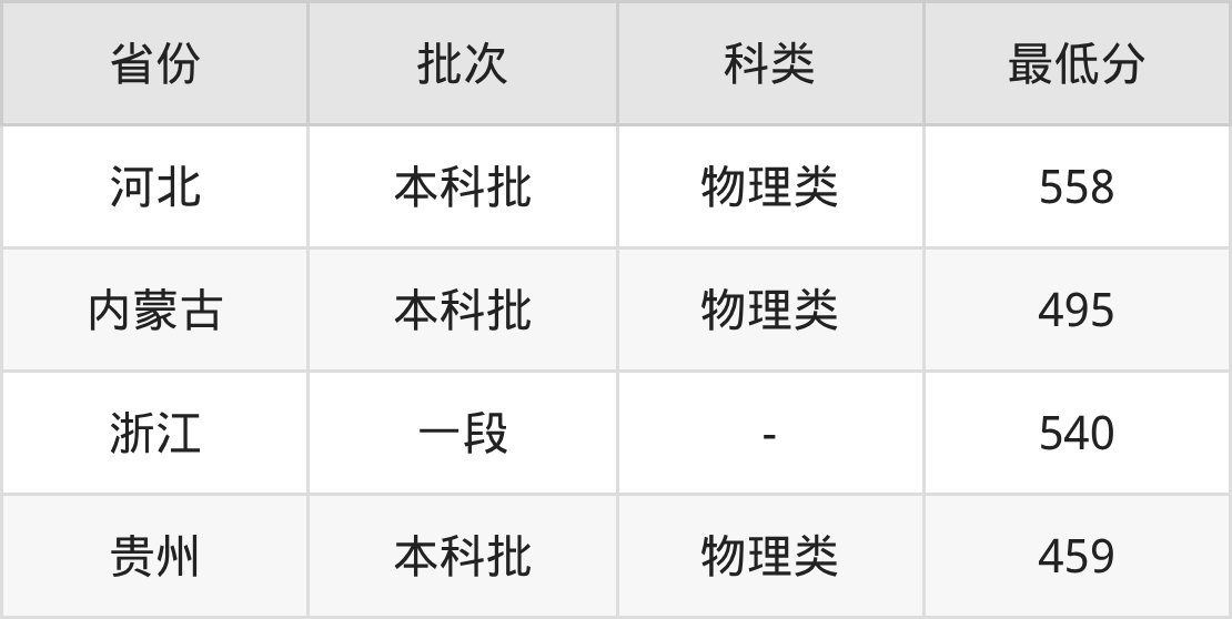 天津农学院机器人工程专业录取分数线2025各省汇总显示,市外招生最低分为河北558分、内蒙古495分、浙江540分、贵州459分。更多专业分数详情、选科要求、专业简介等均可在正文查阅。