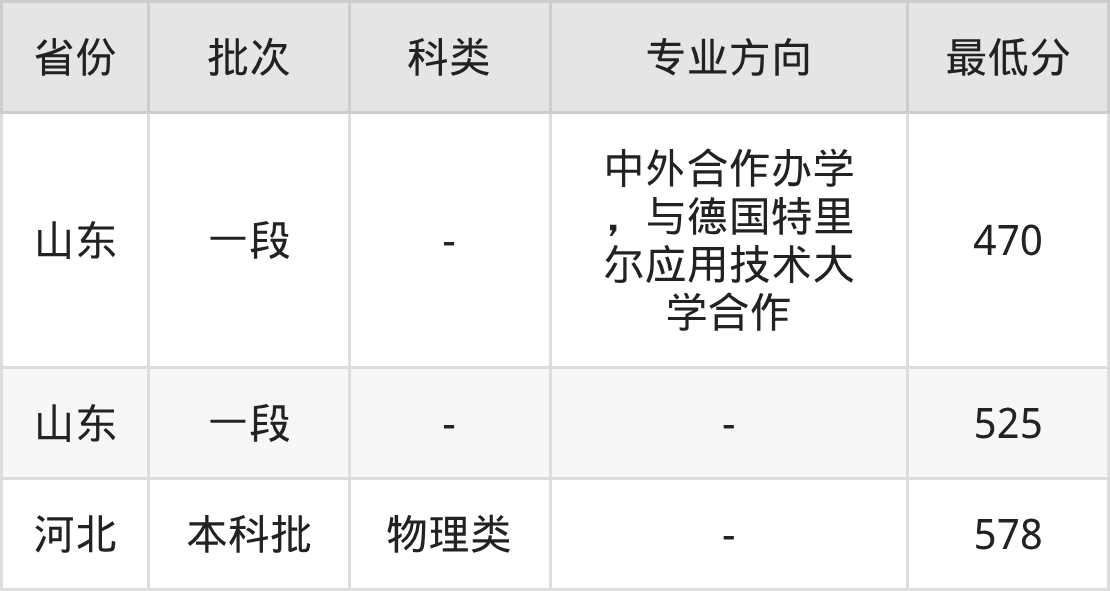 | 一段 | 中外合作办学 ,与德国特里 尔应用技术大 学合作 | 470 | 260889 |