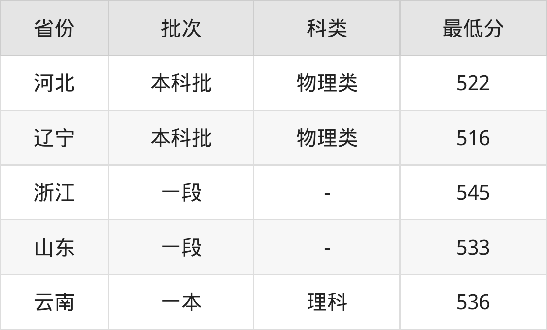 | 批次 | 科类 | 最低分 | 位次 |