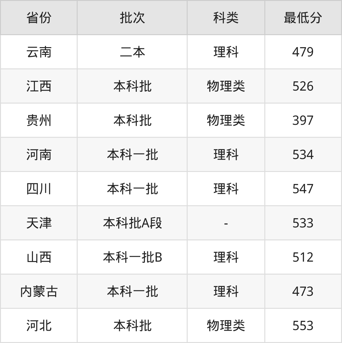 | 批次 | 最低分 | 位次 |