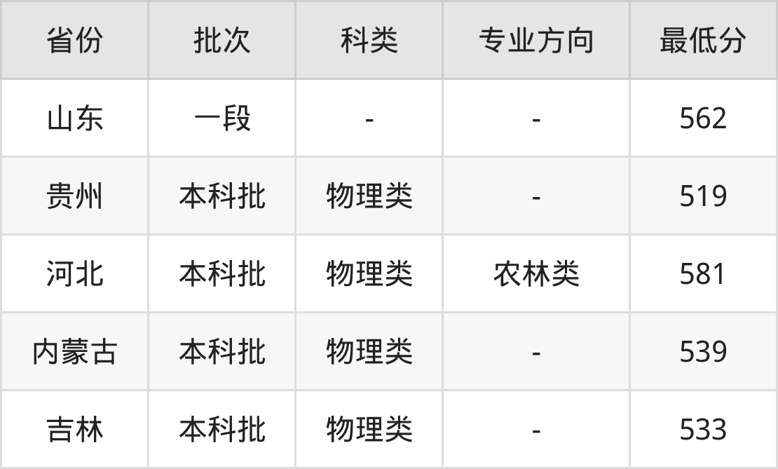 2025年南京林业大学水土保持与荒漠化防治专业在省外招生分数线各不相同,具体如下: