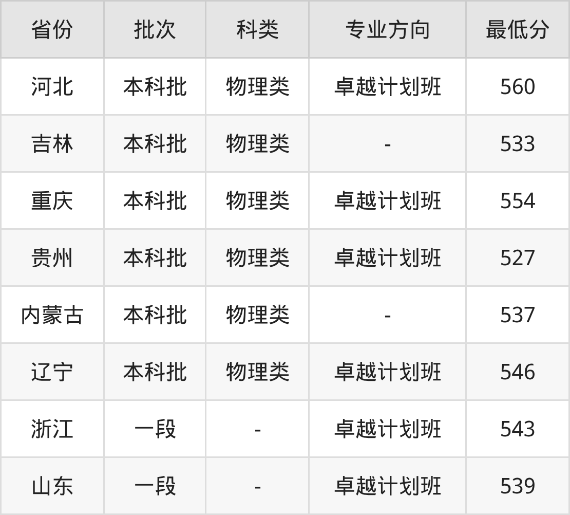 物理类554分(卓越计划班、位次30286名);