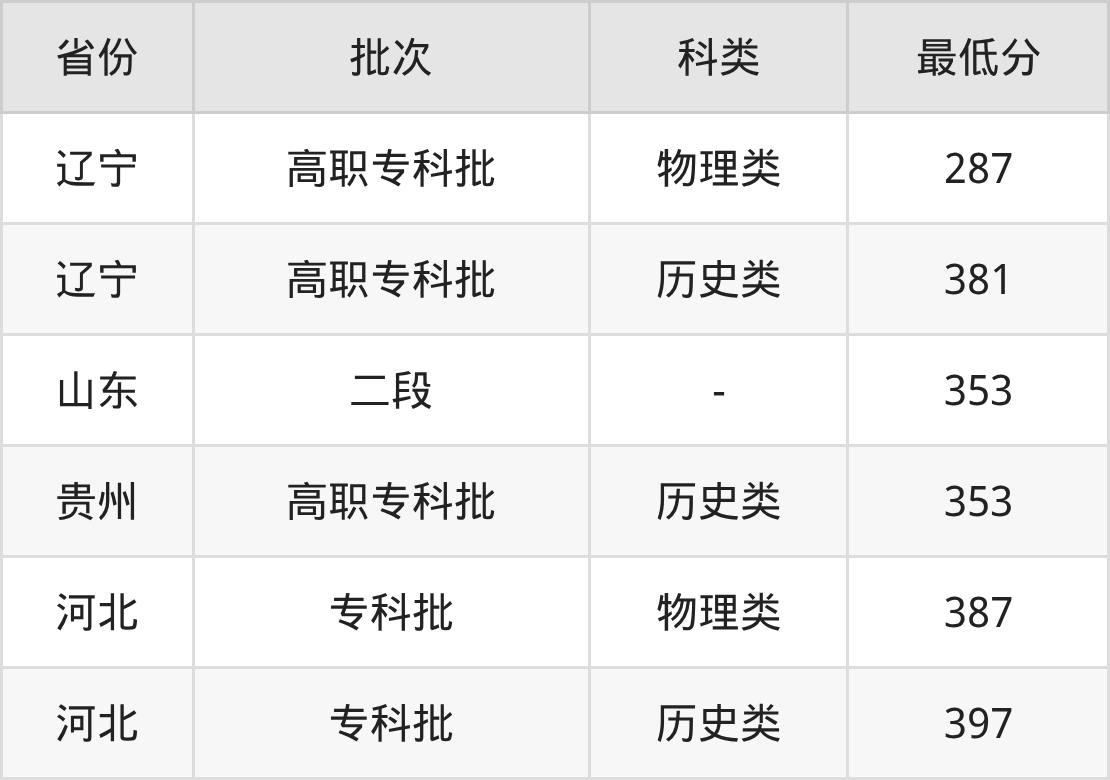 | 批次 | 科类 | 最低分 | 位次 |