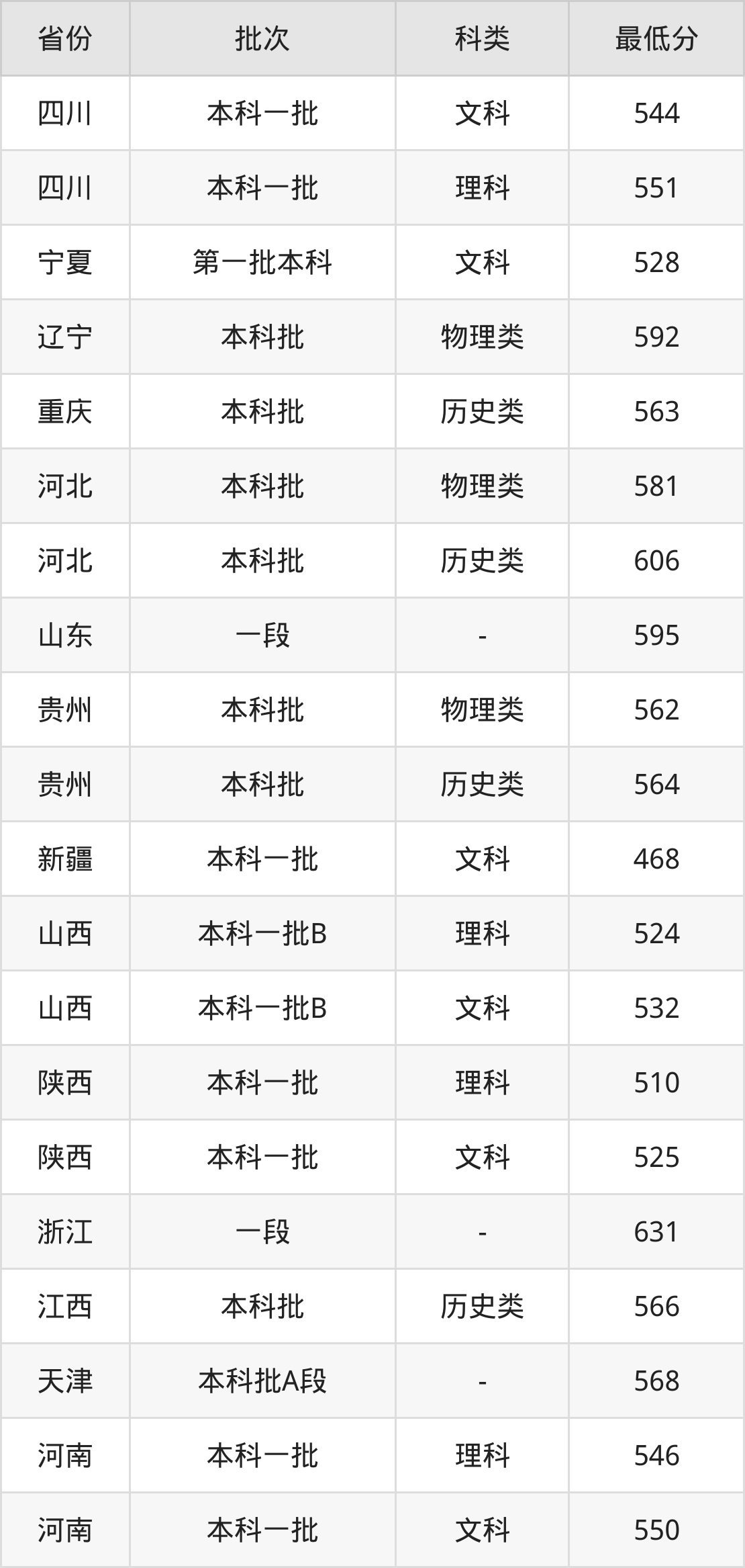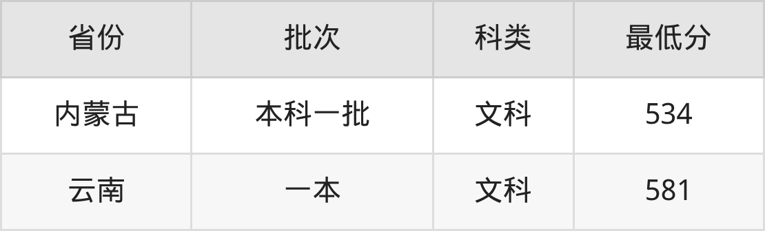 | 批次 | 最低分 | 位次 |