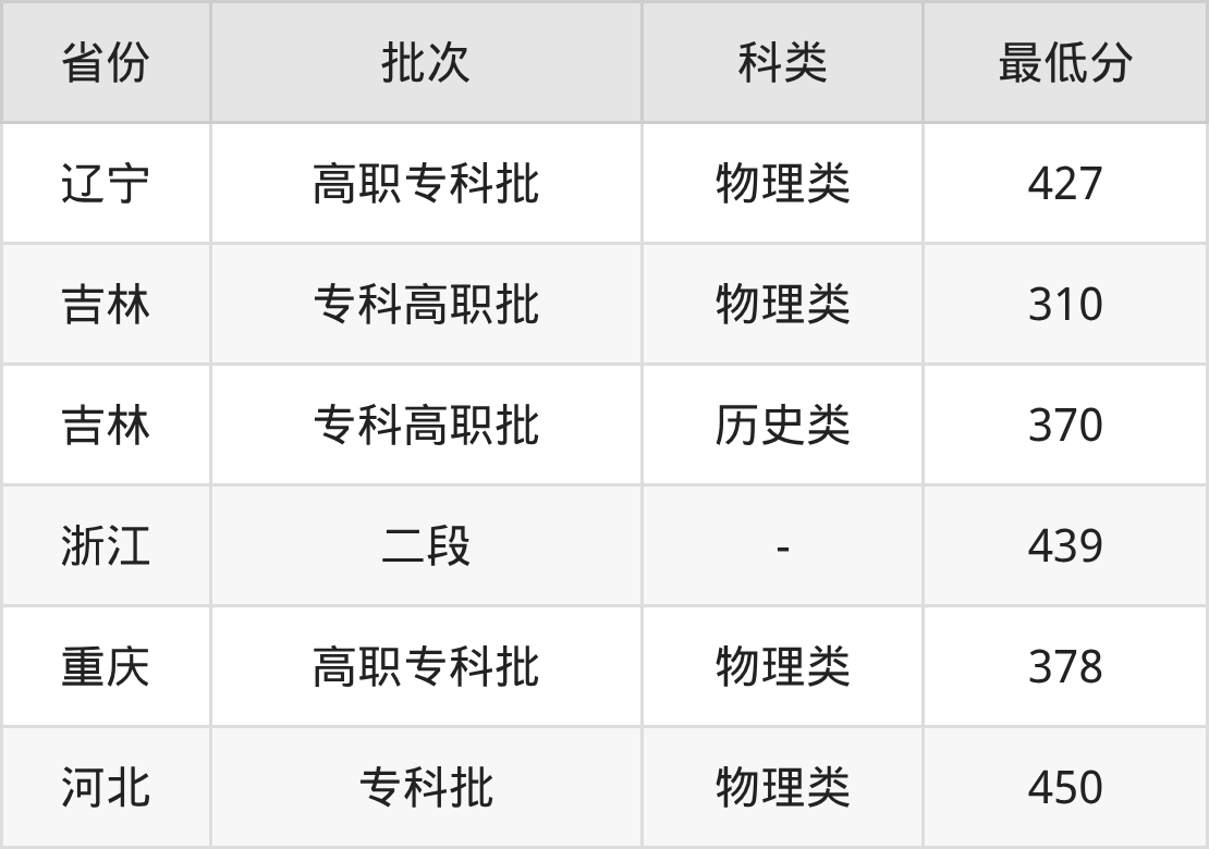 吉林交通职业技术学院城市轨道车辆应用技术专业录取分数线2025各省汇总显示,省内招生最低分为310分,省外招生最低分为辽宁427分、浙江439分、重庆378分、河北450分。更多专业分数详情、选科要求、专业简介等均可在正文查阅。