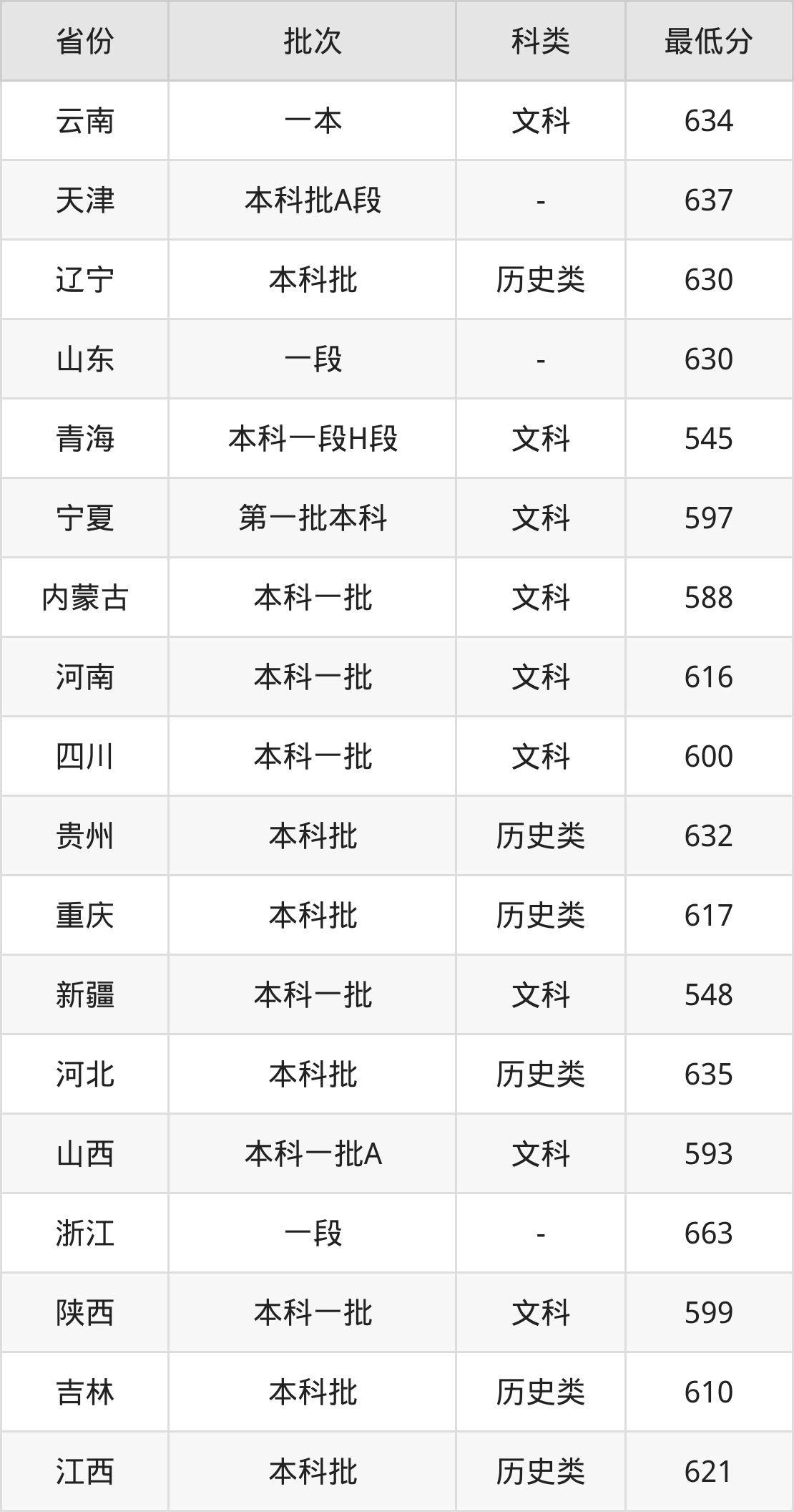 中南大学法学类专业录取分数线2024各省汇总显示,省外招生最低分为浙江663分、云南634分、陕西599分、河北635分等。更多专业分数详情、选科要求、专业简介等均可在正文查阅。