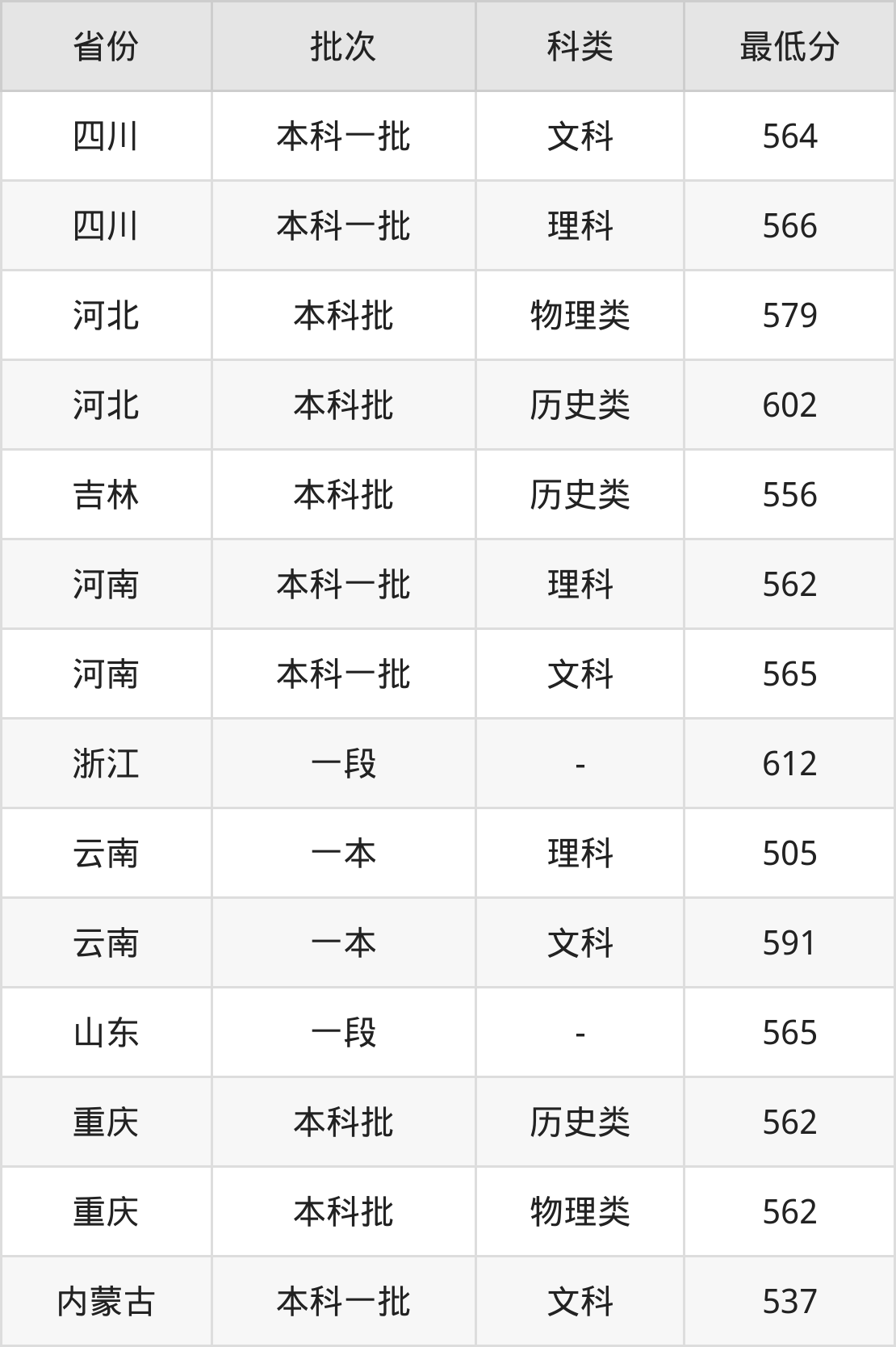 | 批次 | 最低分 | 位次 |