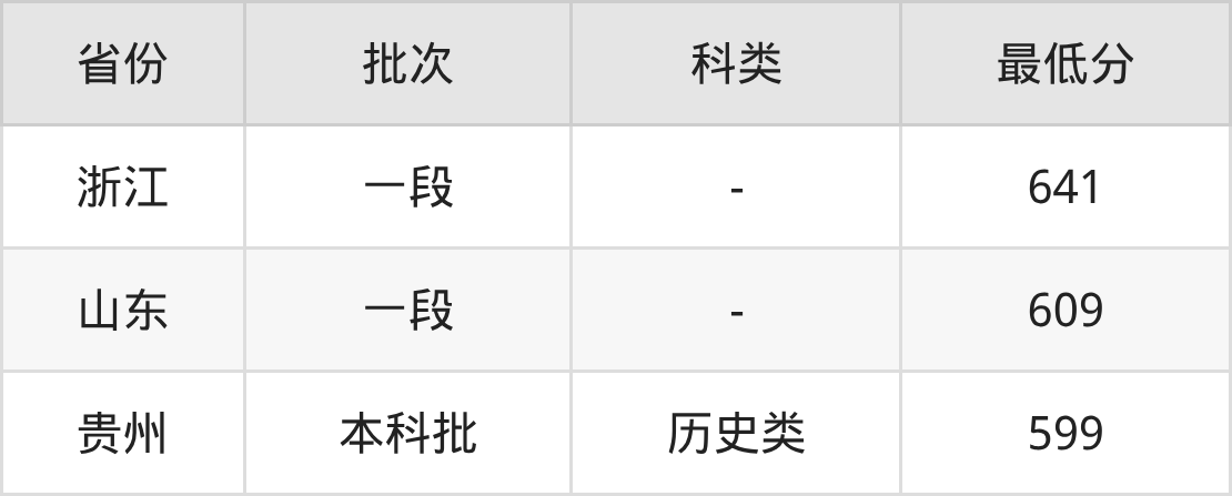 浙江工商大学法学类专业录取分数线2025各省汇总显示,省内招生最低分为641分,省外招生最低分为山东609分、贵州599分。更多专业分数详情、选科要求、专业简介等均可在正文查阅。