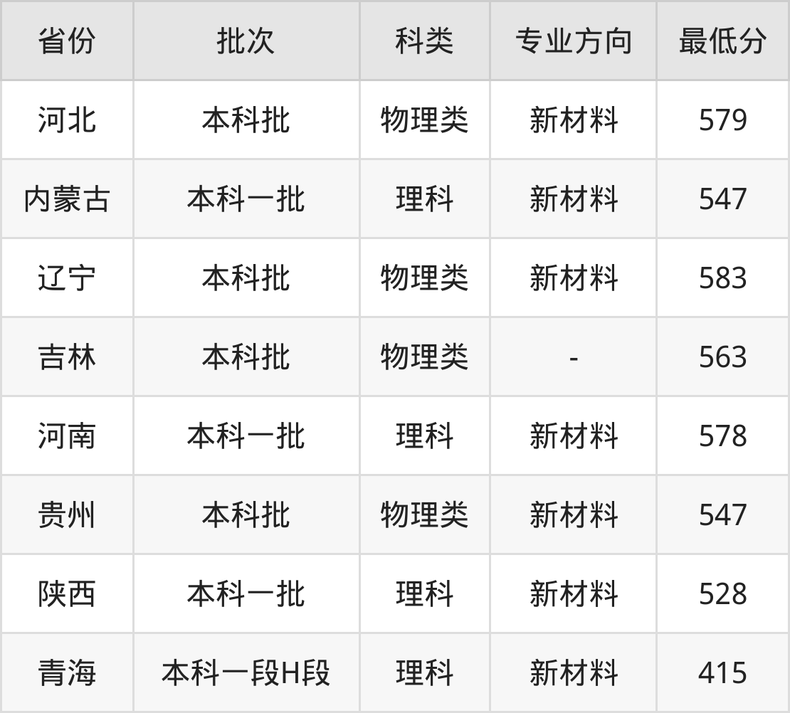 物理类579分(新材料、位次29456名);
