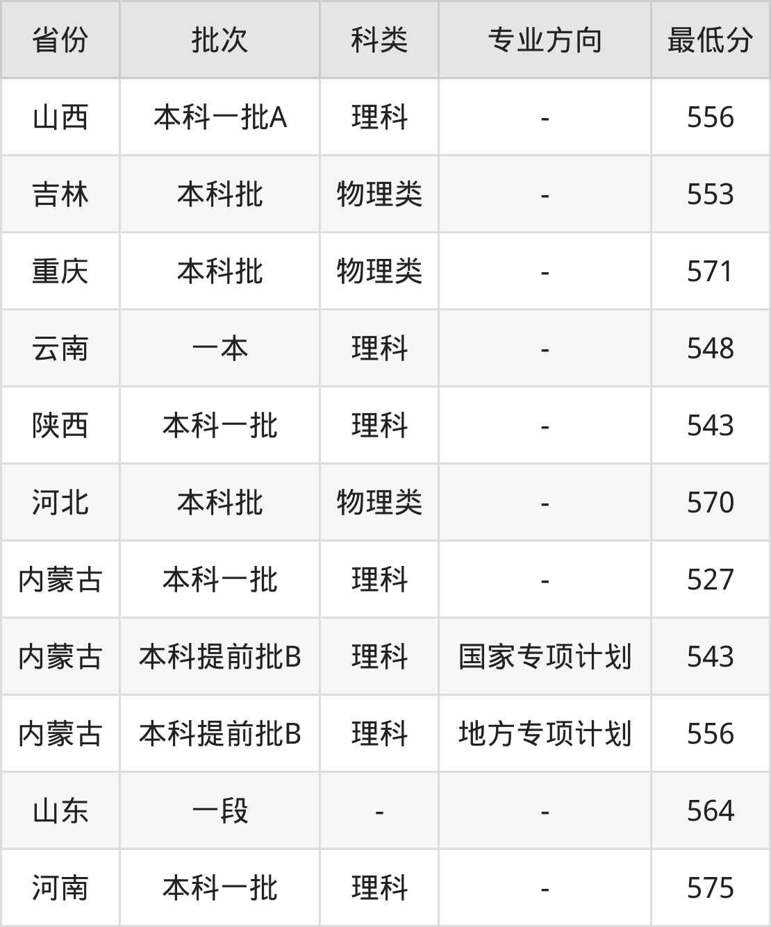 | 批次 | 科类 | 专业方向 | 最低分 | 位次 |