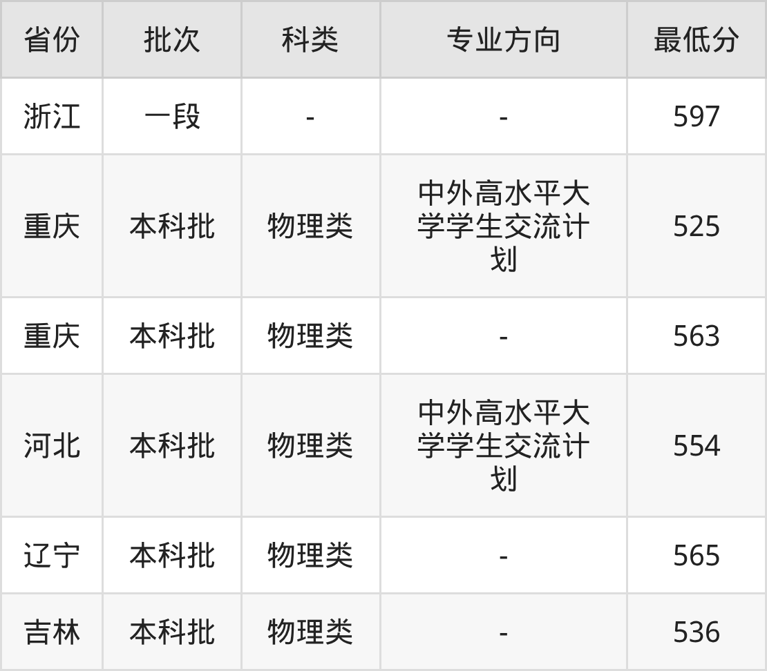 物理类525分(中外高水平大学学生交流计划、位次46560名),物理类563分(位次25811名);