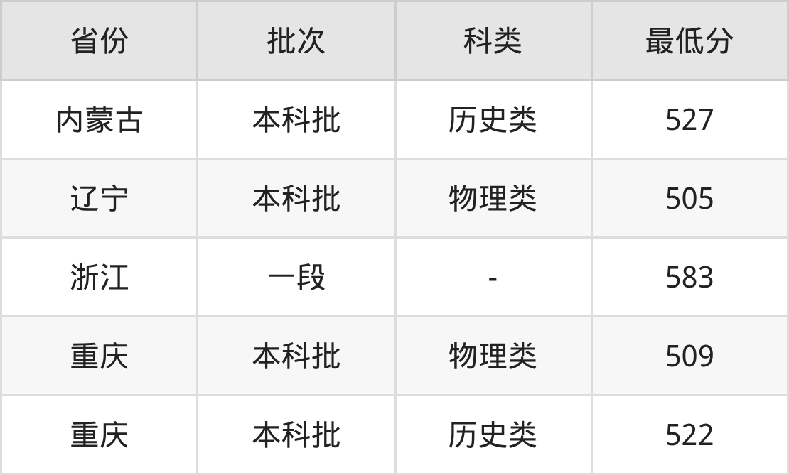 合肥大学国际经济与贸易专业录取分数线2025各省汇总显示,省外招生最低分为浙江583分、重庆509分、内蒙古527分、辽宁505分。更多专业分数详情、选科要求、专业简介等均可在正文查阅。