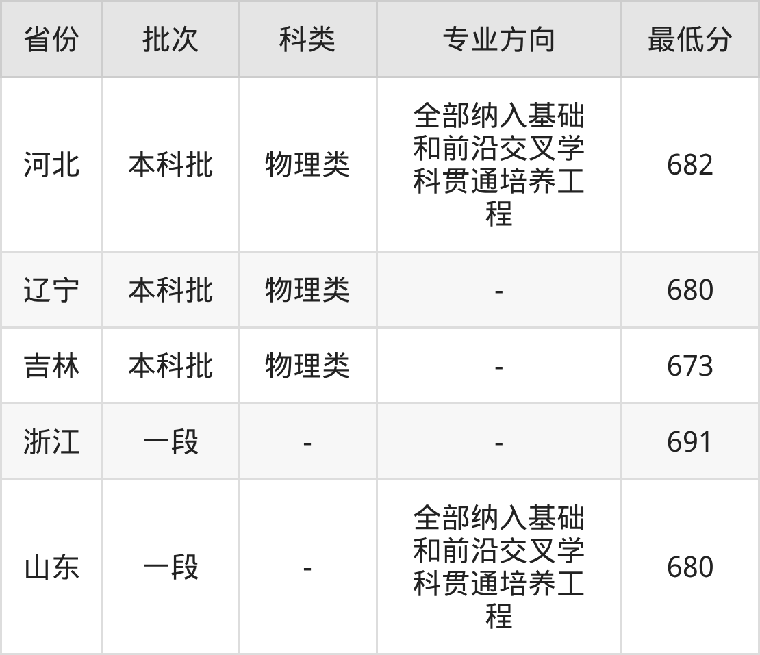 物理类682分(全部纳入基础和前沿交叉学科贯通培养工程、位次206名);