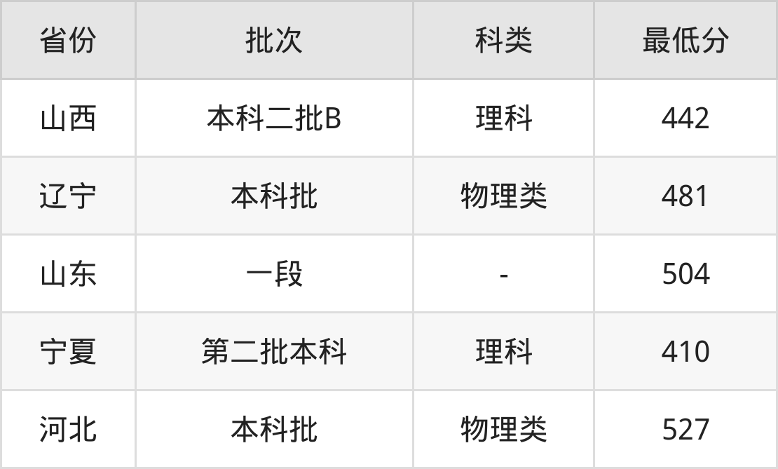 | 批次 | 科类 | 最低分 | 位次 |