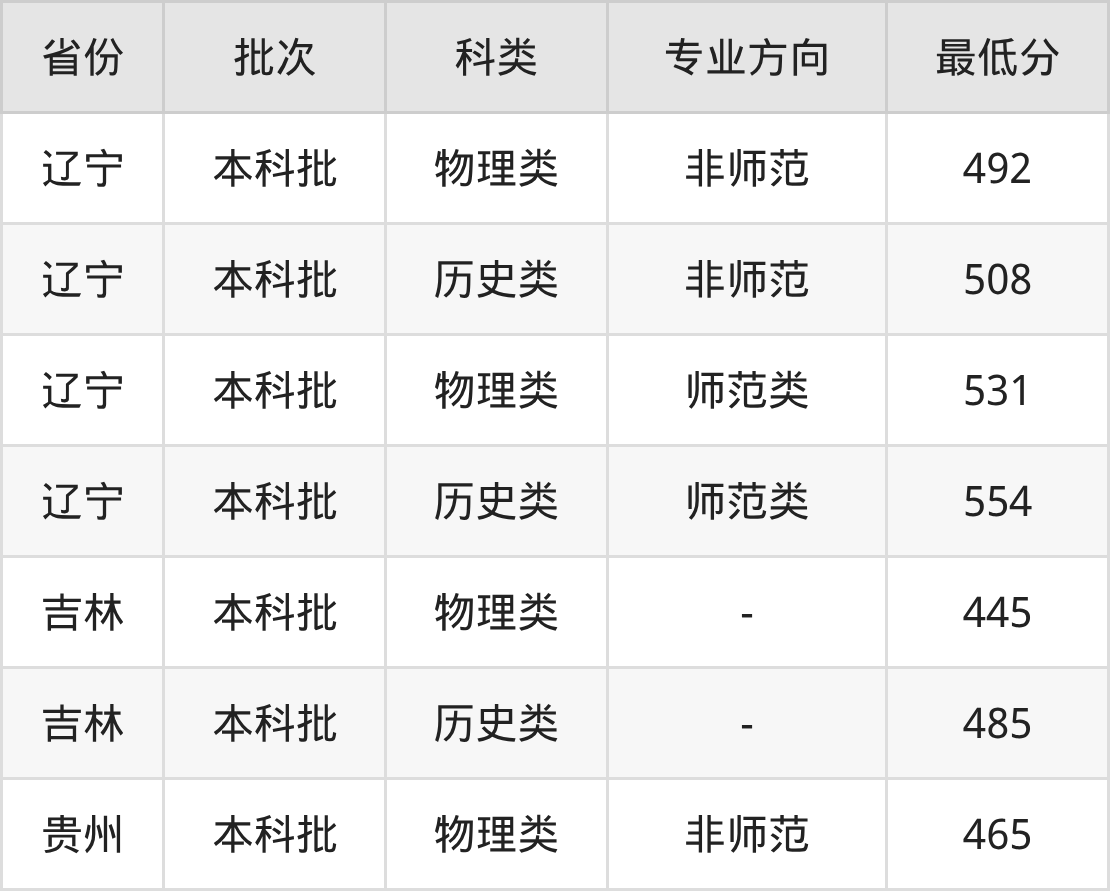 哈尔滨师范大学日语专业录取分数线2025各省汇总显示,省外招生最低分为辽宁492分、吉林445分、贵州465分。更多专业分数详情、选科要求、专业简介等均可在正文查阅。