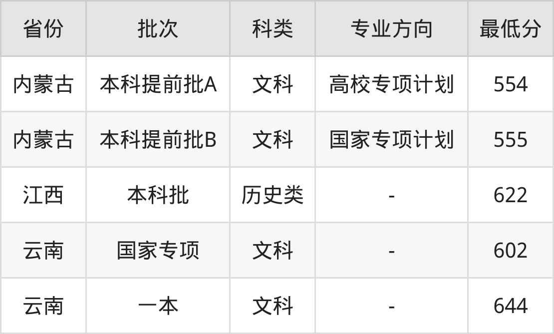 文科554分(高校专项计划、位次1527名),文科555分(国家专项计划、位次1480名);