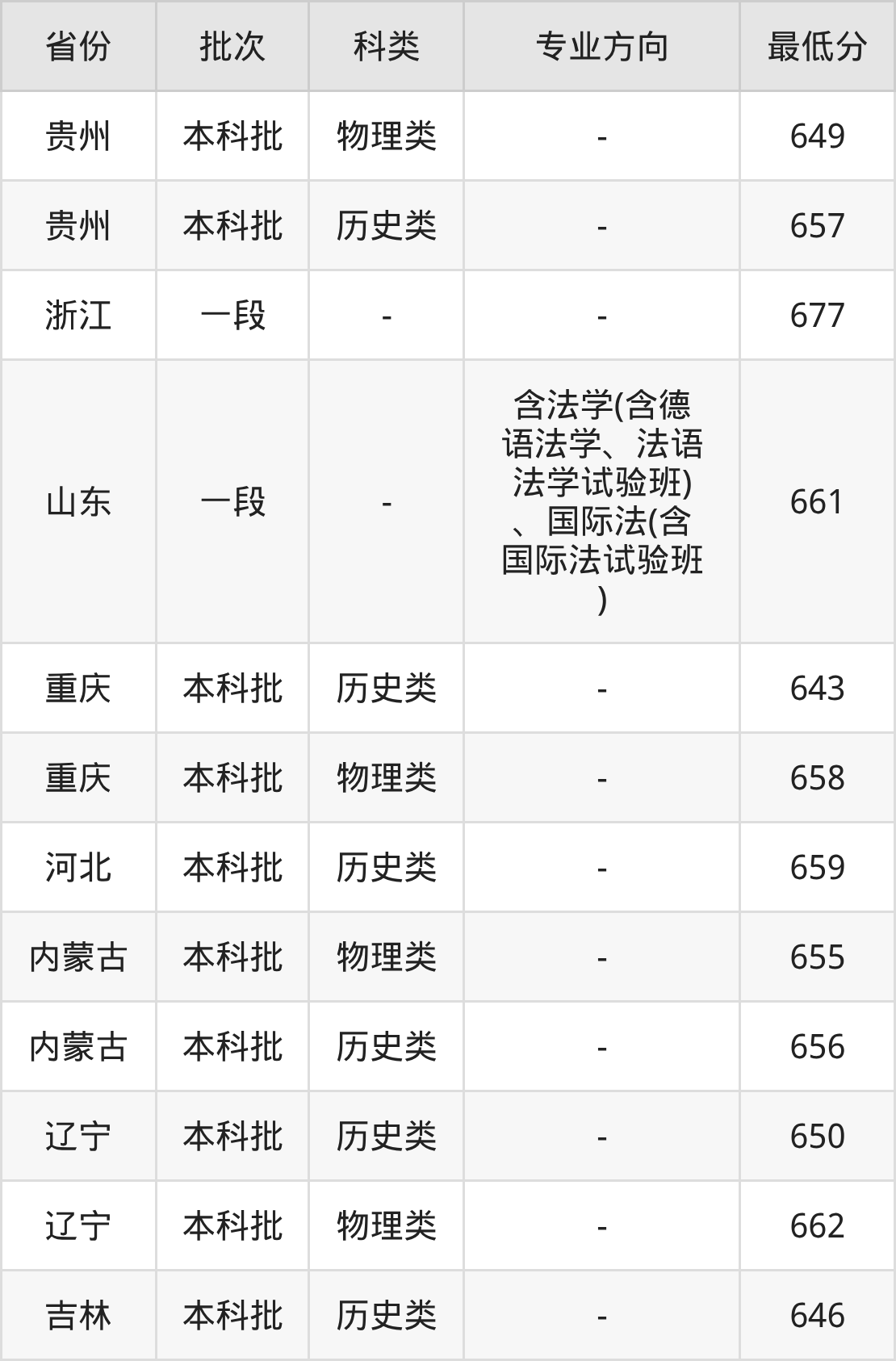 661分(含法学(含德语法学、法语法学试验班)、国际法(含国际法试验班)、位次1737名);