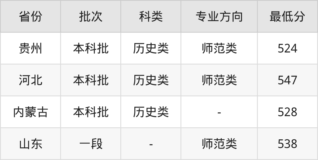 | 本科批 | 历史类 | 师范类 | 547 | 23983 |