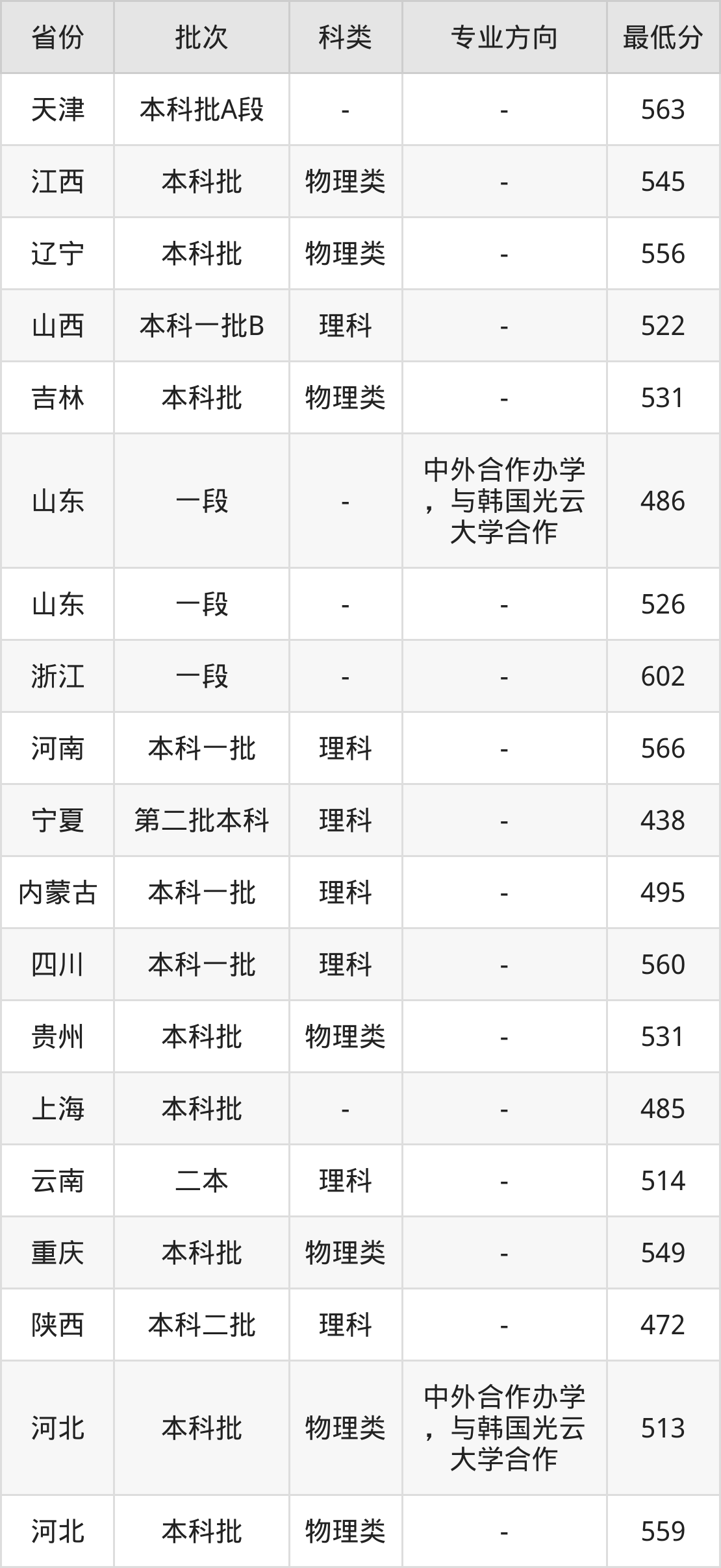 物理类513分(中外合作办学,与韩国光云大学合作、位次102925名),物理类559分(位次46811名)。