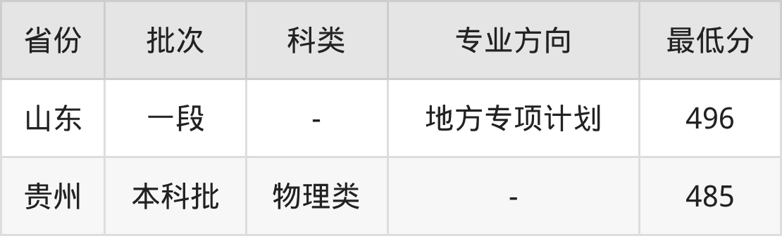 | 批次 | 专业方向 | 最低分 | 位次 |