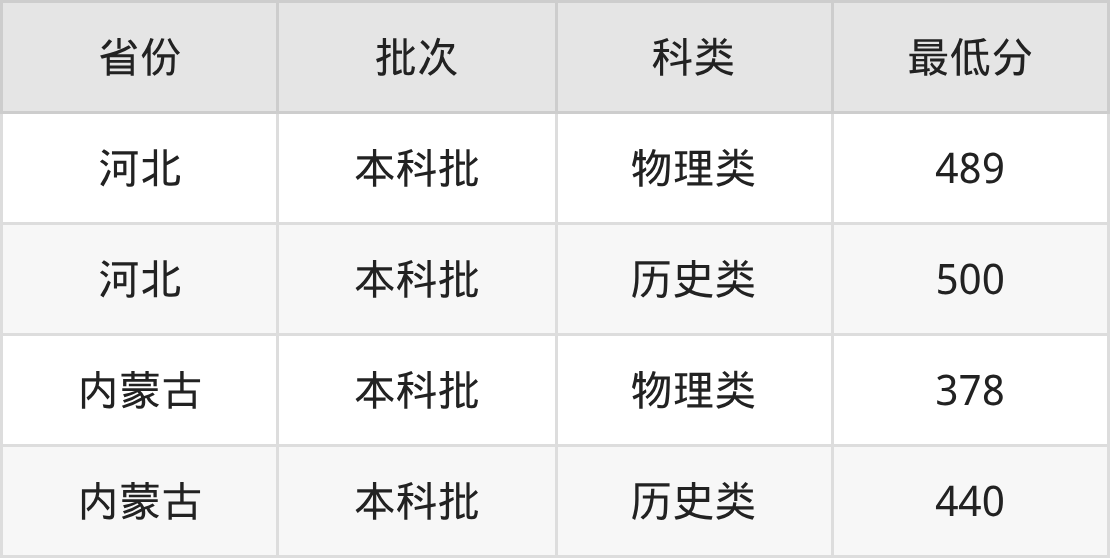 | 批次 | 科类 | 最低分 | 位次 |