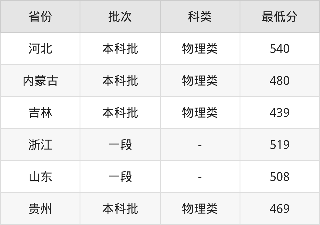 | 批次 | 科类 | 最低分 | 位次 |