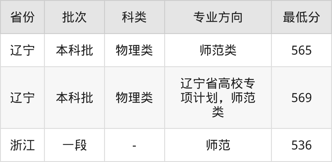 | 本科批 | 物理类 | 辽宁省高校专 项计划,师范 类 | 569 | 24815 |