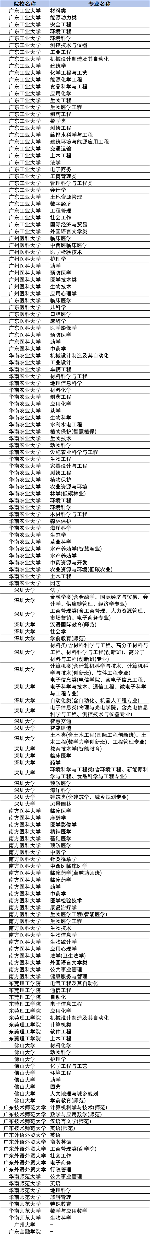各省地方专项计划院校均为省属高校,本文以广东省为例,为大家列举2025地方专项计划学校及专业名单: