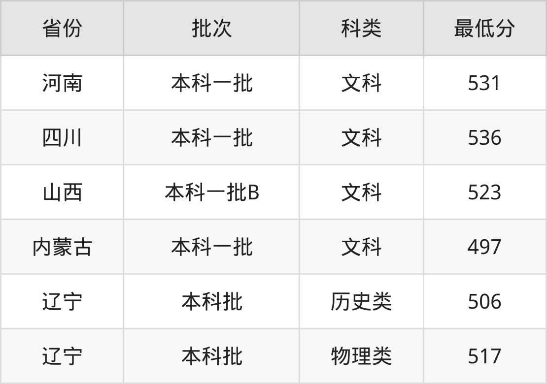 | 批次 | 科类 | 最低分 | 位次 |