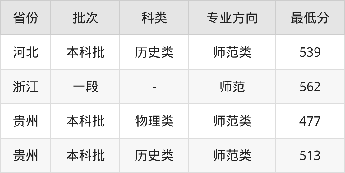 物理类477分(师范类、位次70757名),历史类513分(师范类、位次17443名);