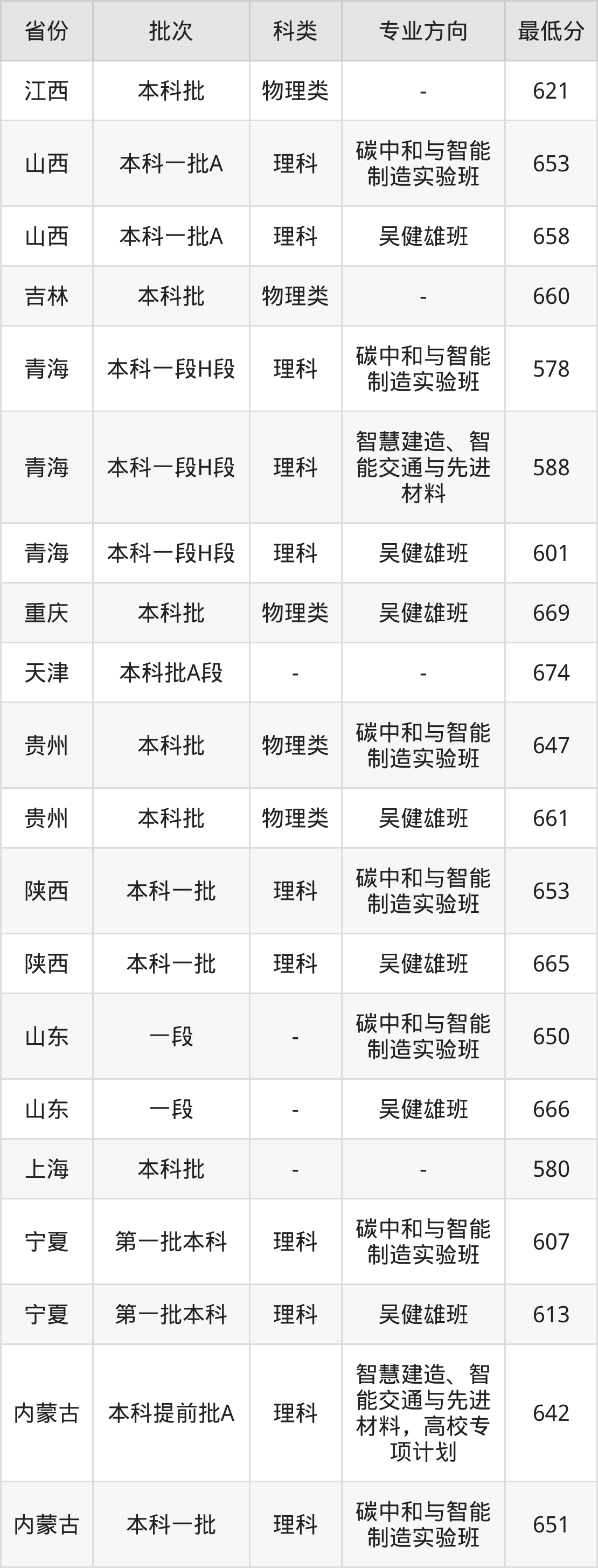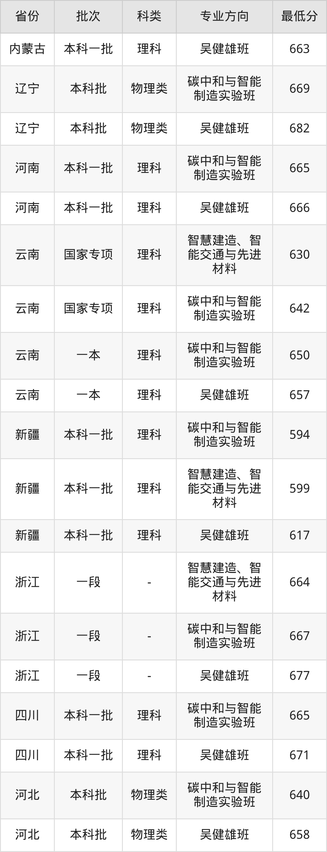 理科642分(智慧建造、智能交通与先进材料,高校专项计划、位次1133名),理科651分(碳中和与智能制造实验班、位次775名),理科663分(吴健雄班、位次417名);
