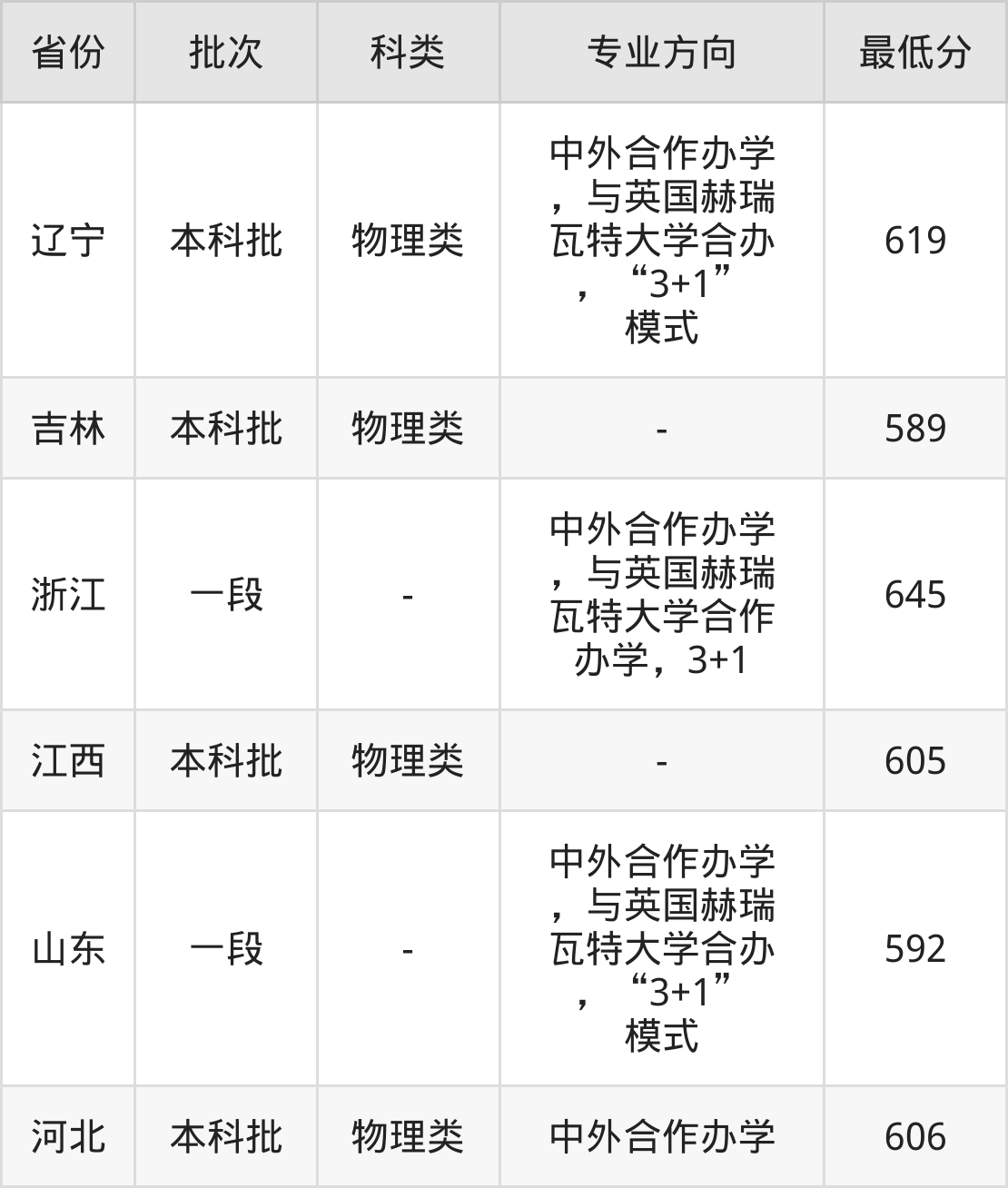 物理类619分(中外合作办学,与英国赫瑞瓦特大学合办,“3+1”模式、位次9615名);