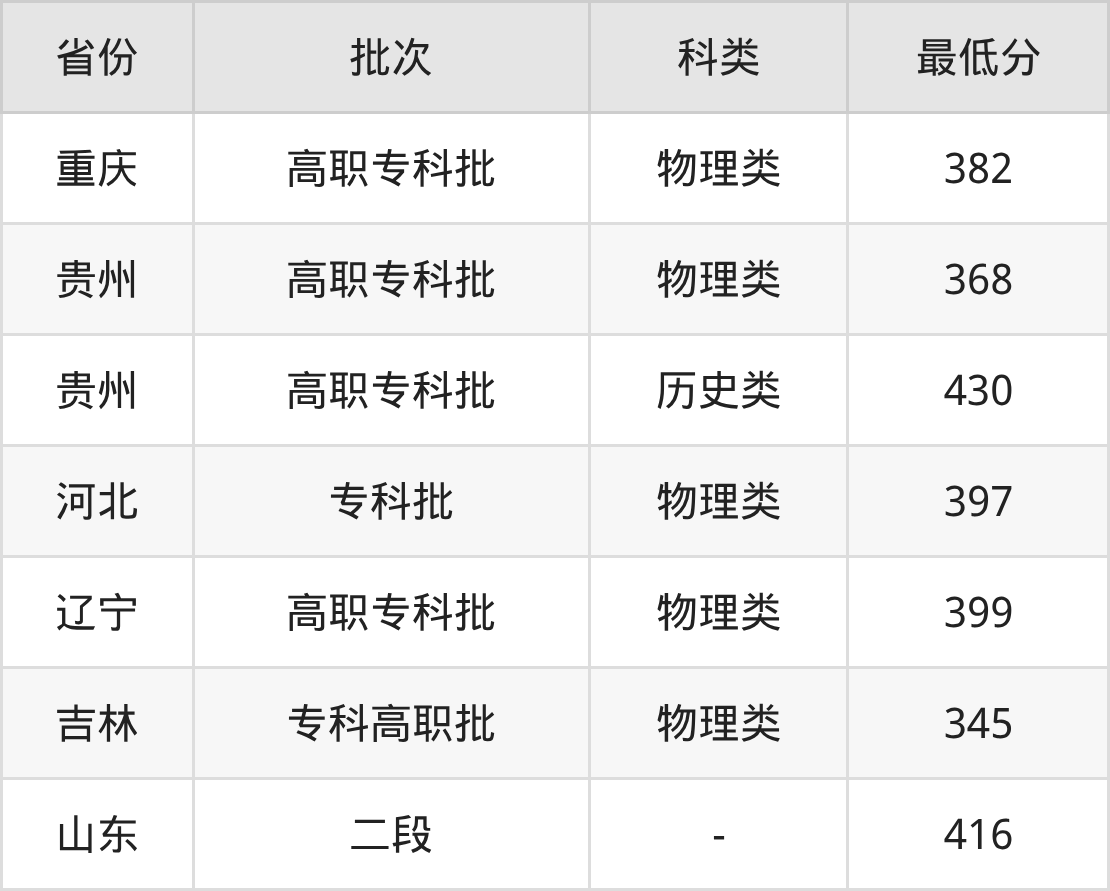 3、吉林省(专科高职批)