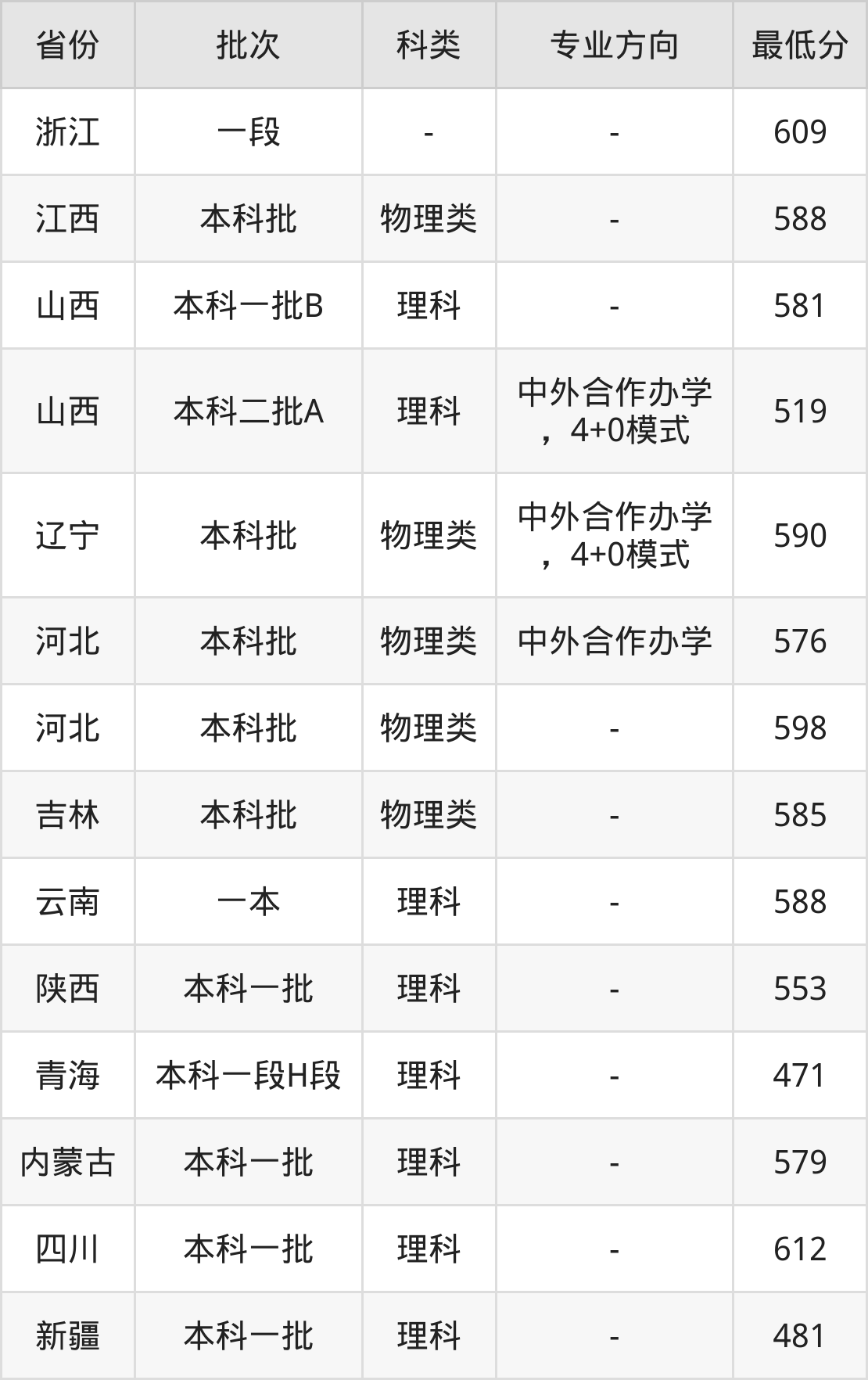 理科581分(位次12561名),理科519分(中外合作办学,4+0模式、位次37401名);