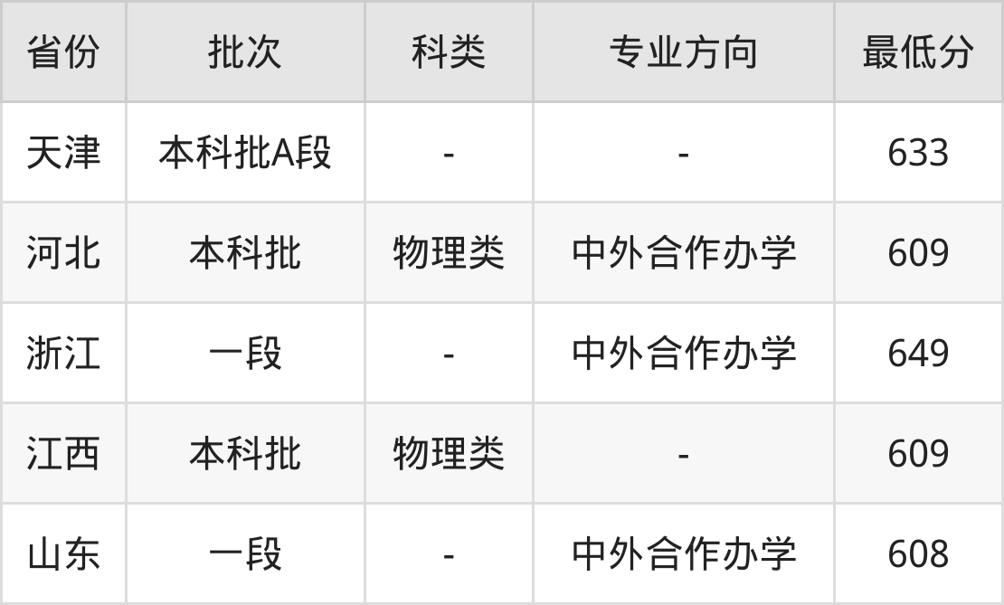 物理类609分(中外合作办学、位次11565名)。