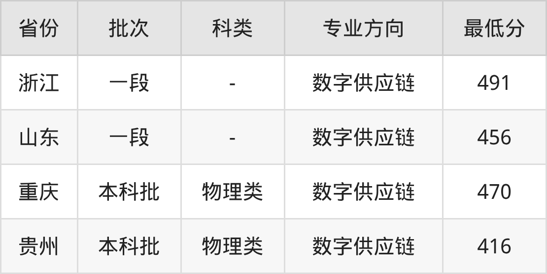 武汉工商学院物流工程专业录取分数线2025各省汇总显示,省外招生最低分为浙江491分、山东456分、重庆470分、贵州416分。更多专业分数详情、选科要求、专业简介等均可在正文查阅。