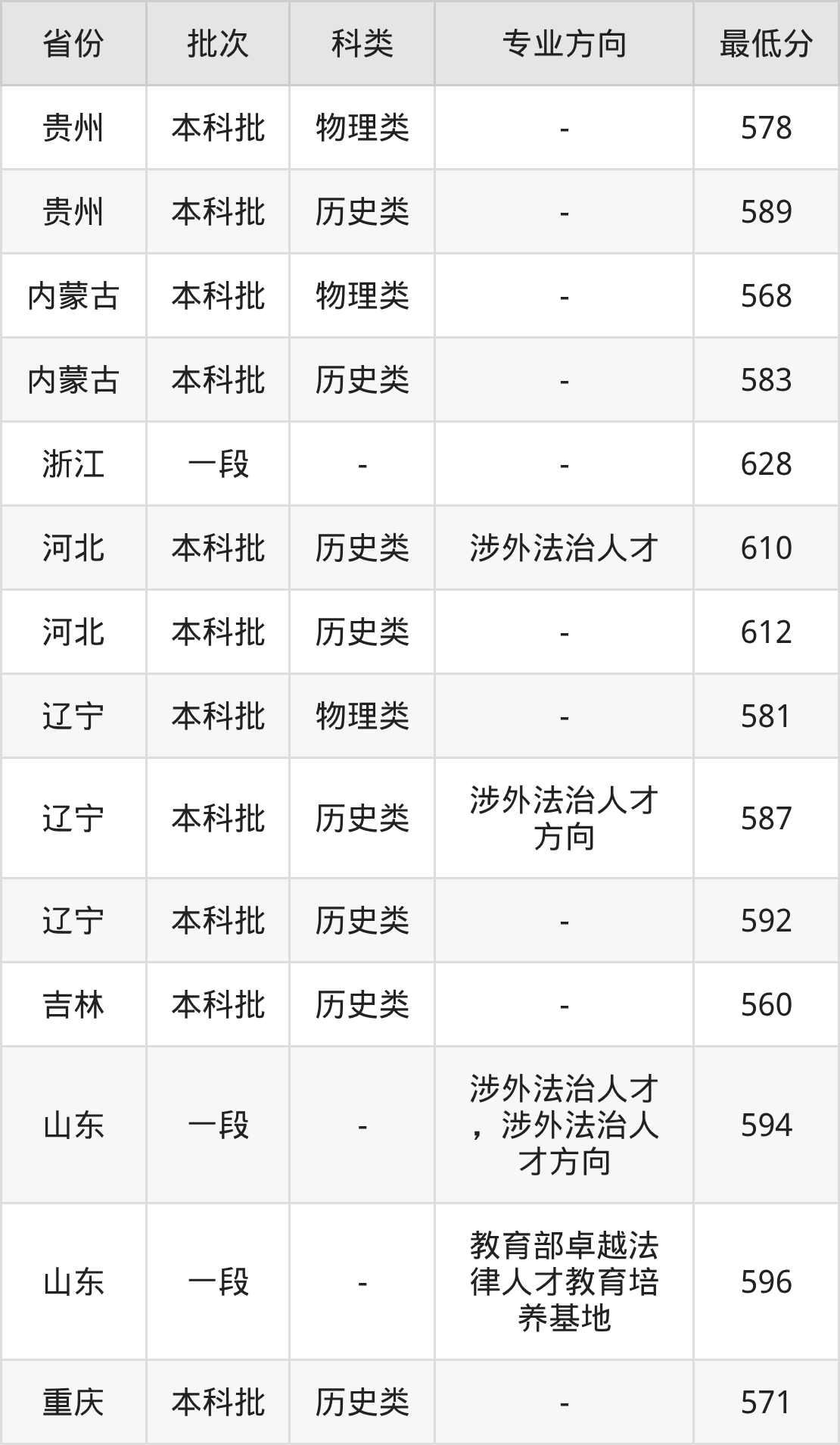 历史类610分(涉外法治人才、位次4008名),历史类612分(位次3660名)。