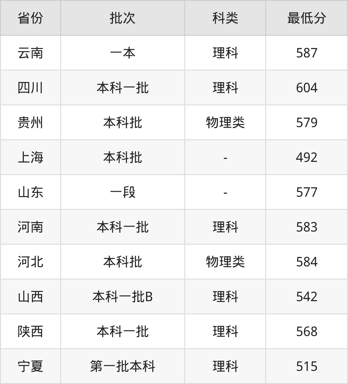 | 批次 | 最低分 | 位次 |