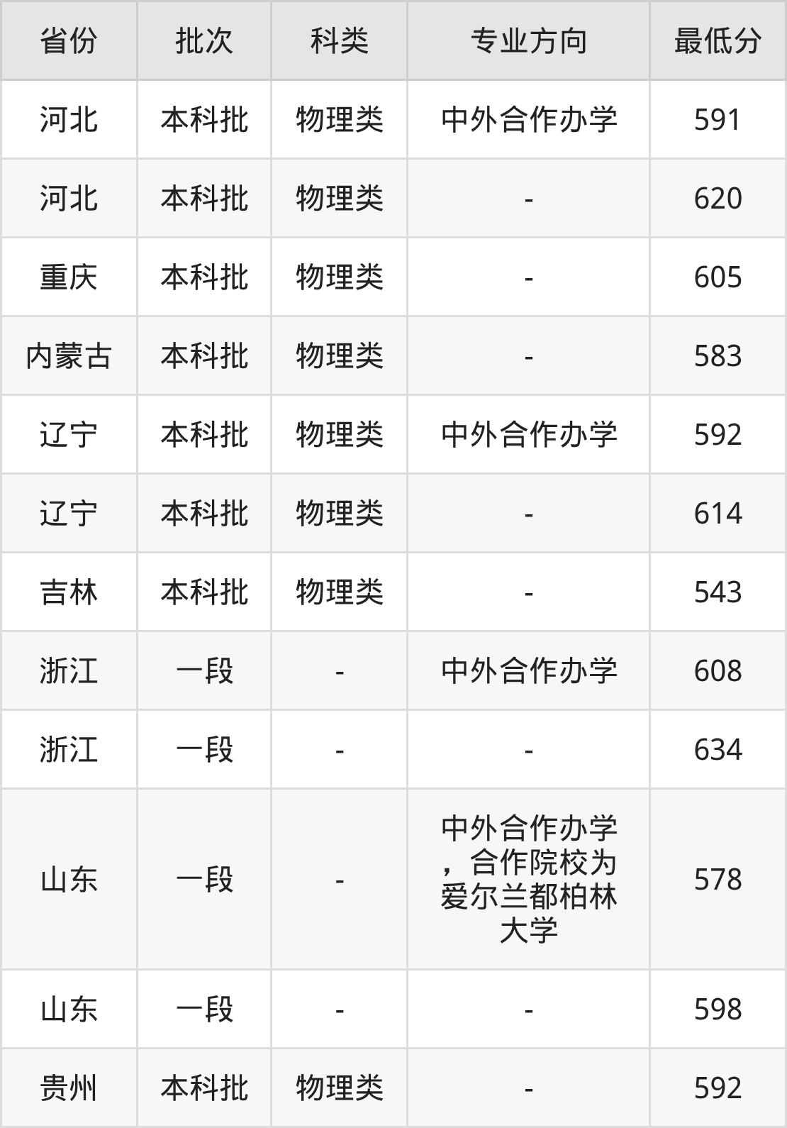 578分(中外合作办学,合作院校为爱尔兰都柏林大学、位次43716名),598分(位次25802名);