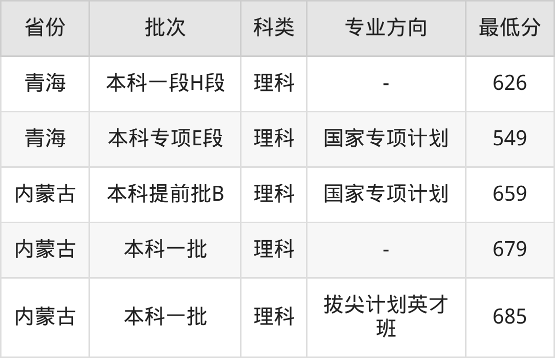 理科659分(国家专项计划、位次505名),理科679分(位次165名),理科685分(拔尖计划英才班、位次109名);