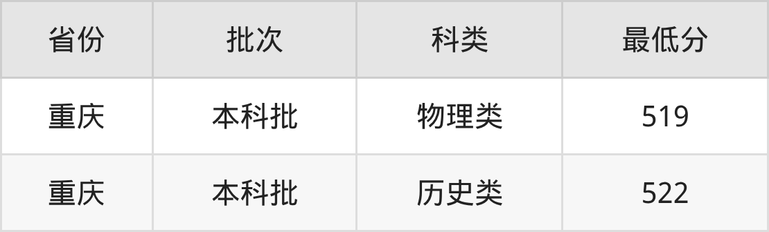 重庆市(本科批)