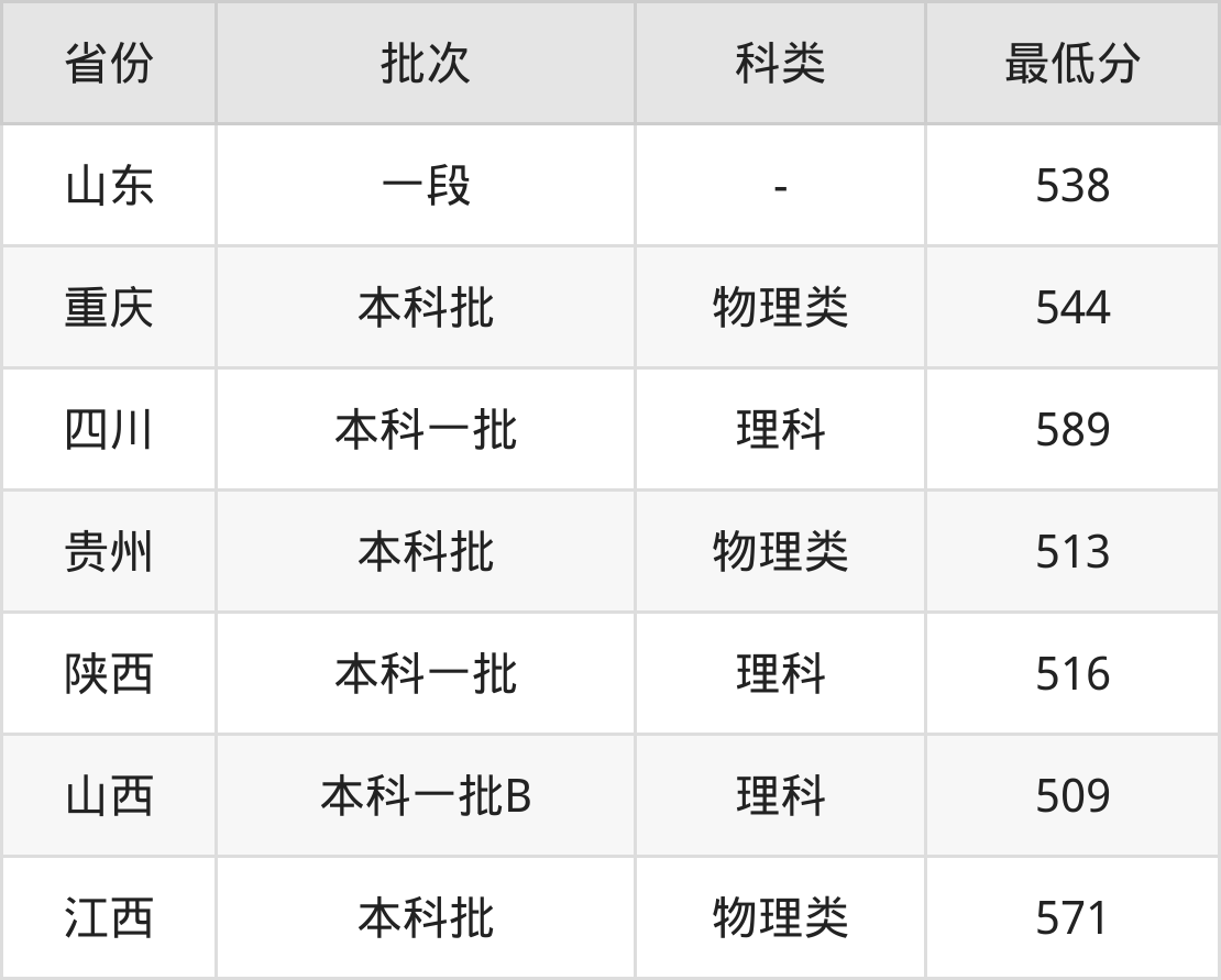 | 批次 | 科类 | 最低分 | 位次 |
