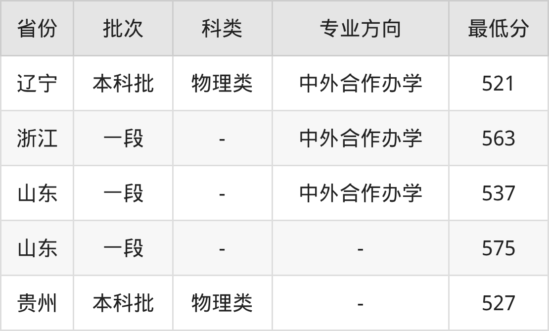 537分(中外合作办学、位次105629名),575分(位次47583名);
