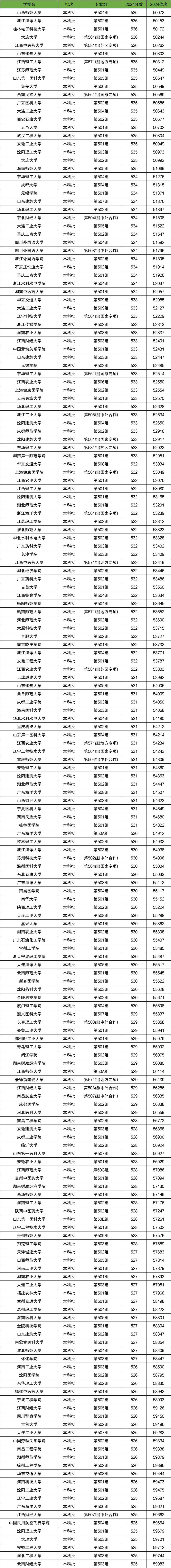 1、536分对应位次50072-50262。有山西师范大学、浙江海洋大学、桂林电子科技大学、大连大学、江西中医药大学。