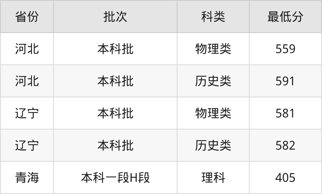 | 批次 | 科类 | 最低分 | 位次 |
